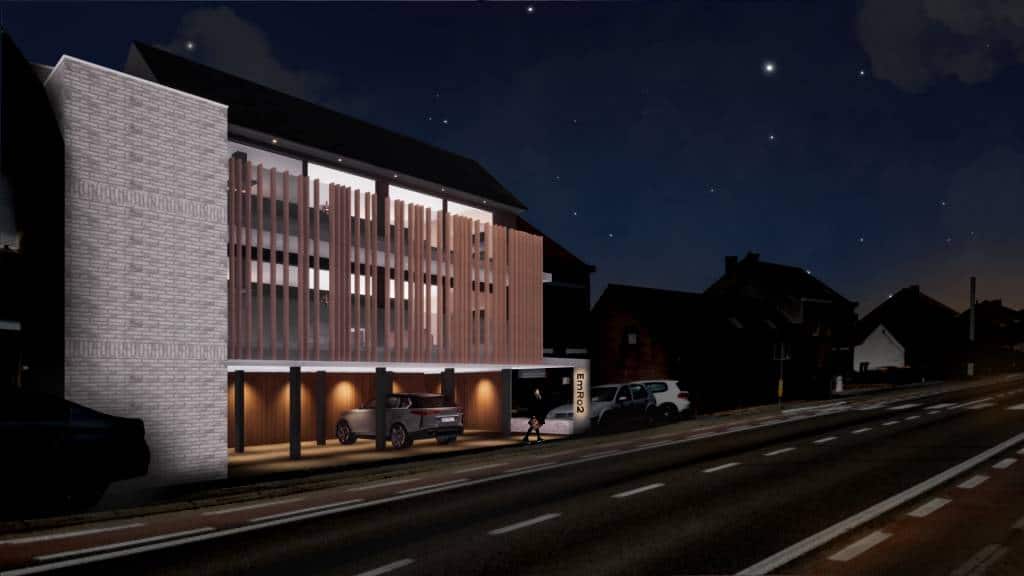 Projets à l'étude Démolition d’une habitation et reconstruction d’un immeuble à logements – Rumes Particularités Bardages bois Briques collées Partager Facebook Twitter